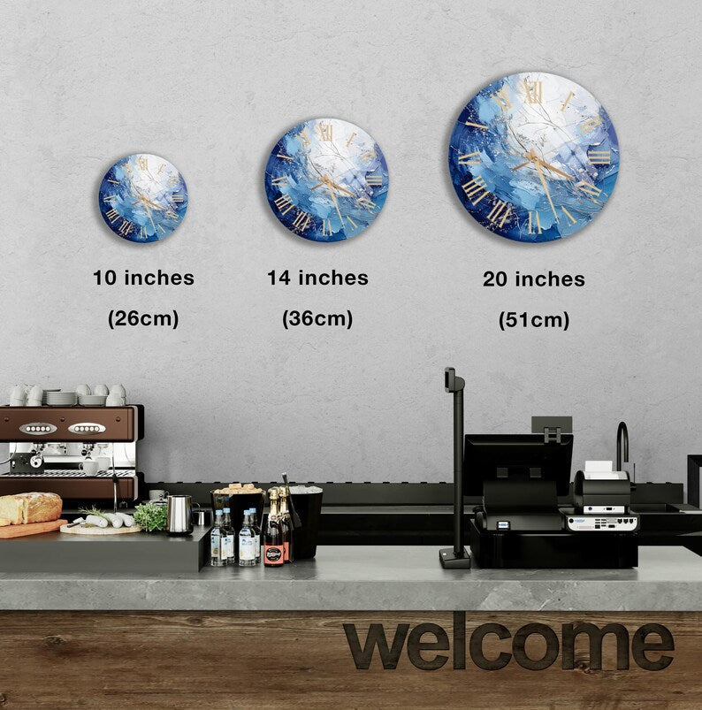 Notre horloge murale abstraite en verre bleu est une fusion frappante de textures douces et d'encre et de travail au pinceau délicat, imprimée sur du verre trempé durable. Les couleurs vives et fluides apportent une élégance naturelle à tout salon, bureau ou espace créatif. Chaque horloge est fabriquée avec des matériaux de haute qualité et dispose d'un mécanisme silencieux qui ne fait pas tic-tac pour une atmosphère paisible.