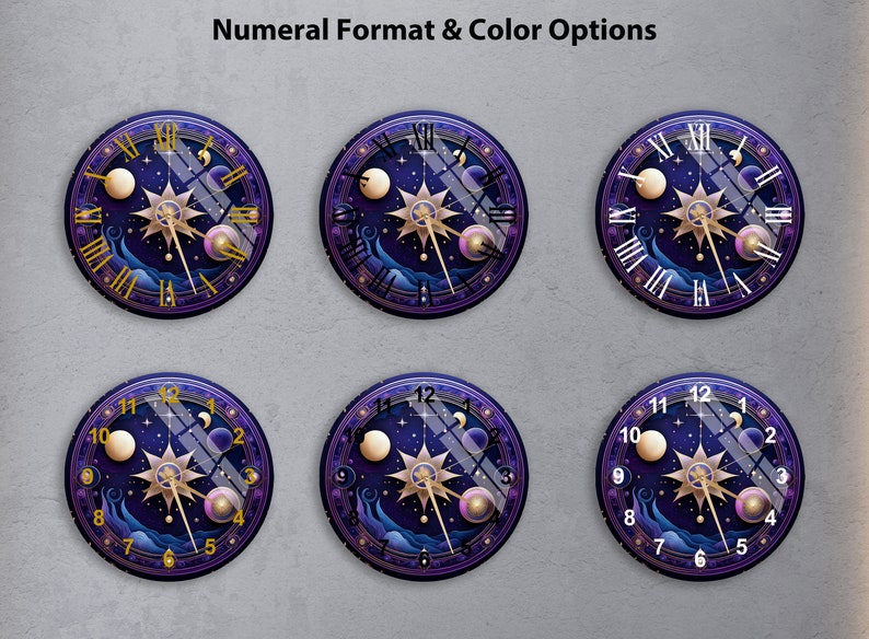 Notre horloge murale en verre trempé phases céleste et lunaire associe un design élégant à une touche de cosmos. Dotée d'un fond bleu profond orné de phases lunaires époustouflantes et de détails célestes, cette pièce de décoration unique apportera une ambiance moderne et mystique à n'importe quel salon. Parfait comme cadeau contemporain pour les nouvelles maisons ou les couples, il ajoute à la fois fonctionnalité et charme artistique à votre espace.