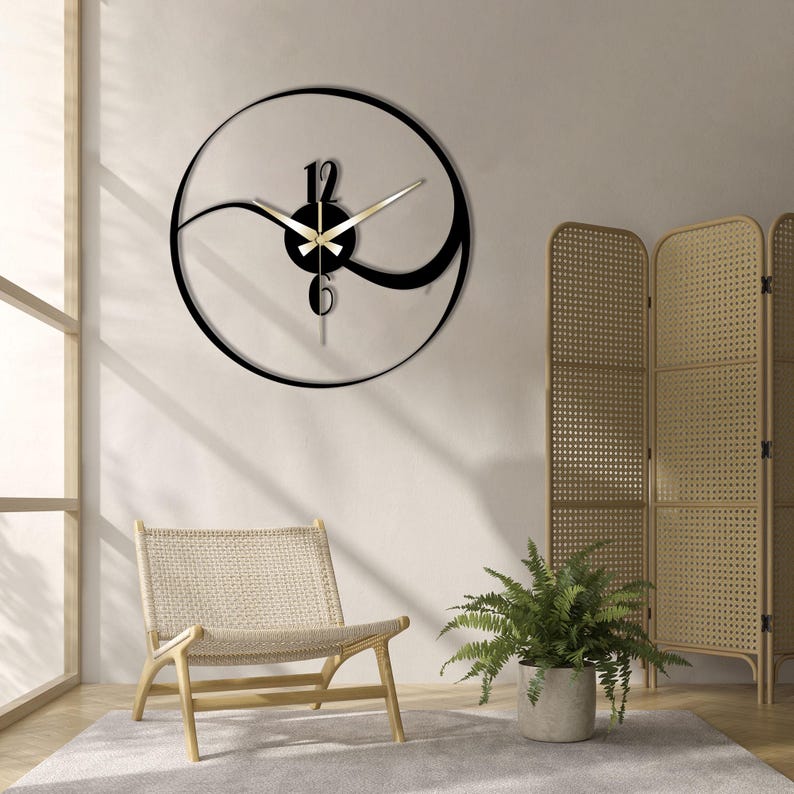 Cette magnifique horloge murale en métal apporte une élégance moderne et un mouvement épuré à votre mur. Son design abstrait unique et ses lignes fluides créent une esthétique dynamique et minimaliste. Mettant en valeur uniquement les chiffres essentiels 12 et 6, cette horloge est une œuvre d'art raffinée et pratique pour les espaces contemporains, alliant harmonieusement chronométrage et beauté abstraite.